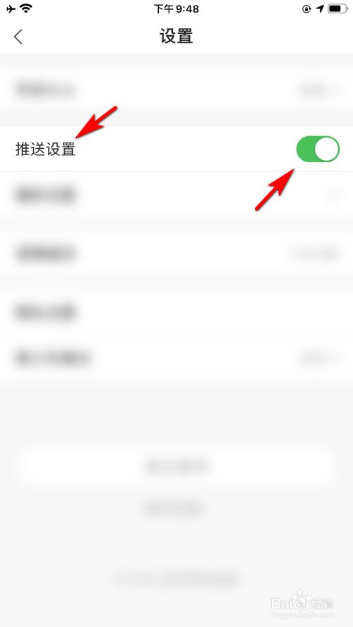 在设置中,点击推送设置的选项后方的开关。