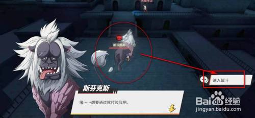 找到最后一个boss“斯芬克斯”并与之对话,点击“进入战斗”,点击“出战”,战斗胜利,点击“返回”。