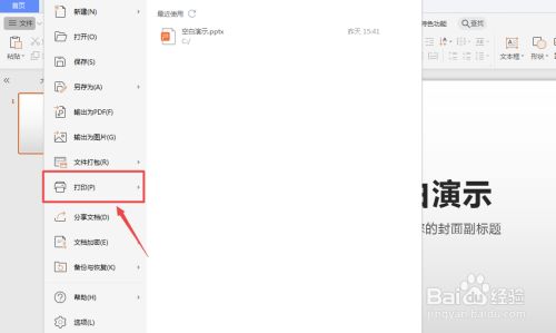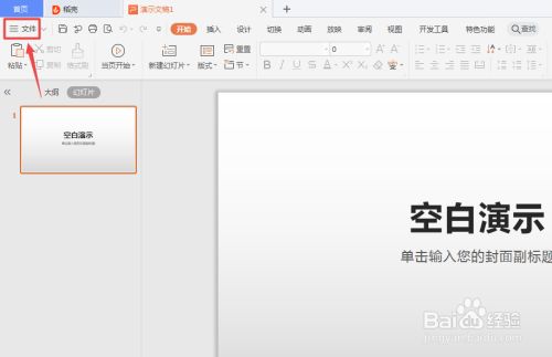 打开WPS演示文档,点击左上角的文件。见下图