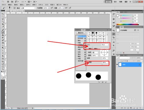 点击【画笔东西】,点击【窗口】-【画笔】,将画笔东西栏调出。点击【画笔东西栏】图标后,按图示设置好间距和大小参数;