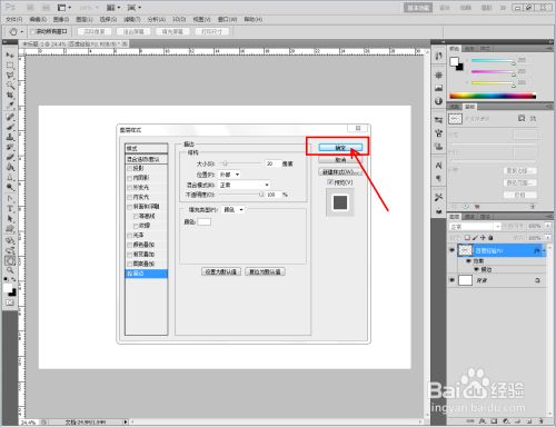 双击图示文字图层空白区域,弹出图层样式设置栏后,勾选【描边】并设置好描边的各个参数;