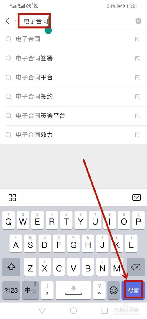 然后输入【电子合同】,点击【搜刮】。