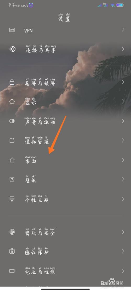 点击桌面进入设置页面。