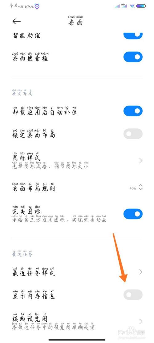 标的目的下滑动桌面设置的页面找到显示内存信息。