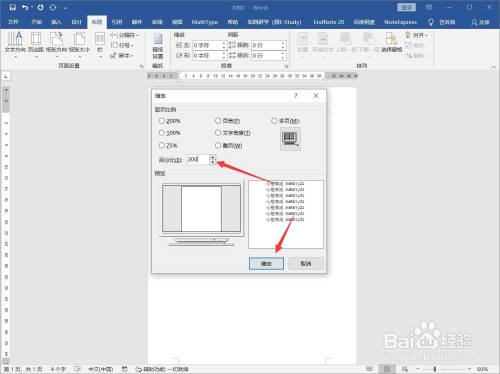 在弹出的窗口中设置显示比例的百分比,调大数字,点击【确定】即可放大页面。