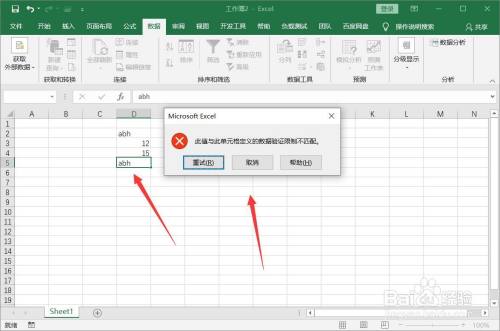 在D列中输入不异的内容或者数字时会弹出提醒窗口,显示无法输入。