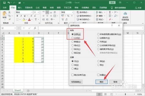 在设置窗口中选择粘贴类型为【全数】,包罗内容、格局、公式等,点击【确定】。