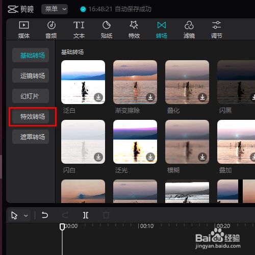 接着点击下方的特效转场。