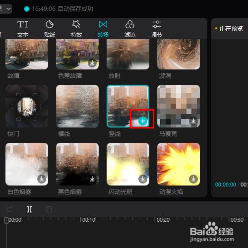 然后在右侧找到竖线的转场结果。
