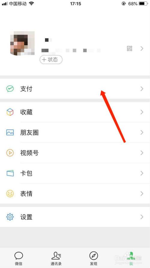 第二步:在“我”的里面,点击“支付”。