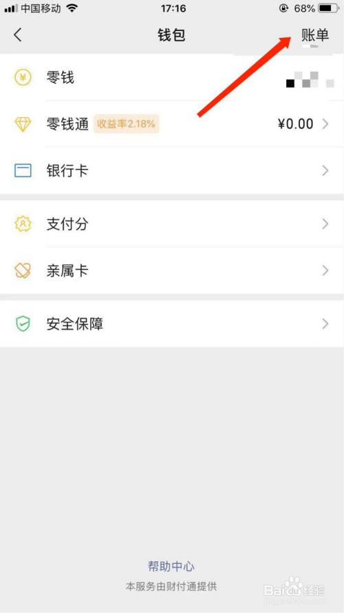 第四步:在“钱包”里面,点击右上角的“账单”。