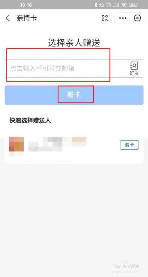 3、点击赠予亲情卡。
