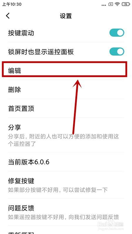 在该遥控器【设置】页面,选择【编纂】选项点击。