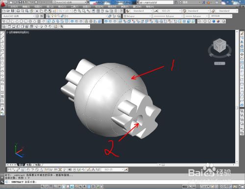 按图示调整好两模子间的位置关系后,点击建模东西栏中的【差集】并依次选区球体和自界说模子即可。以上就是关于CAD球体镂空图案建造方式的所有介绍。