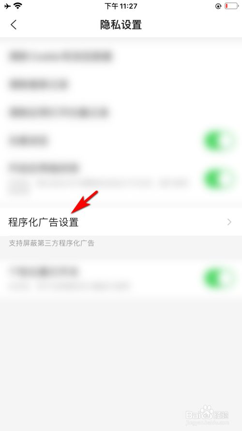 点击程序化告白屏障的选项后方的开关。