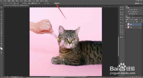 回到图层中,选择选框东西,点击屏幕上方的调整边缘,CC版本中叫选择并遮住