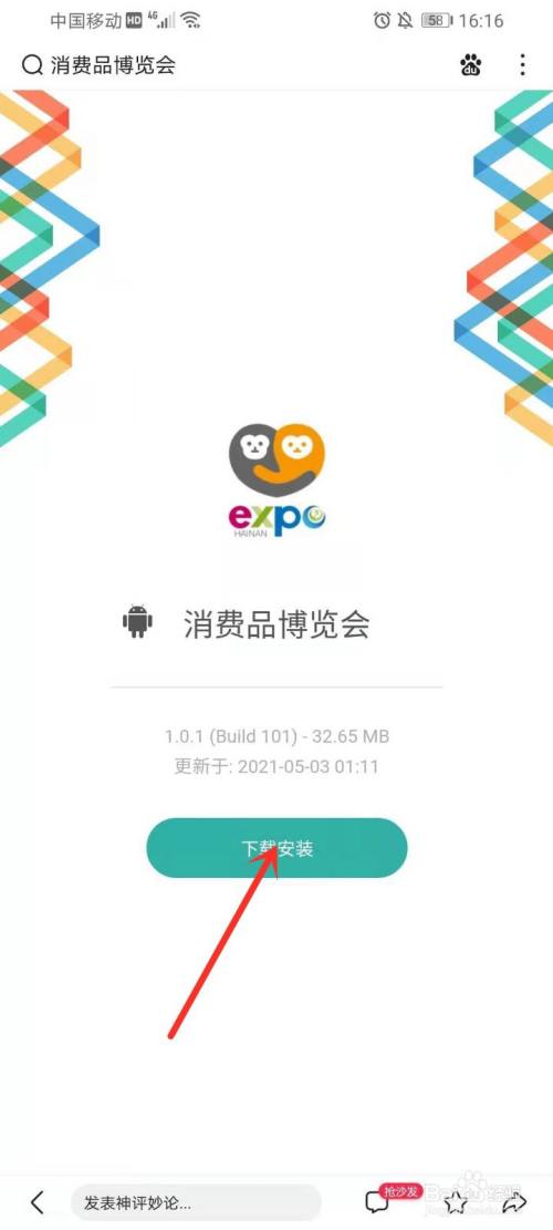 在弹出的窗口中点击【下载】,即可下载消博会APP安装包。