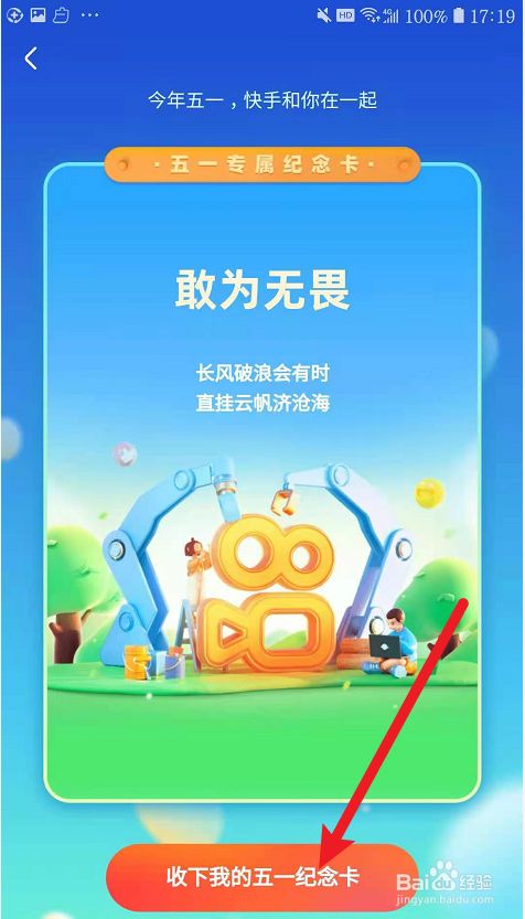 到最后形当作我们专属的纪念卡,点击“收下我的五一纪念卡”。