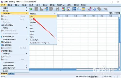 查看excel数据,打开spss,点击【文件】-【导入数据】-【Excel】。