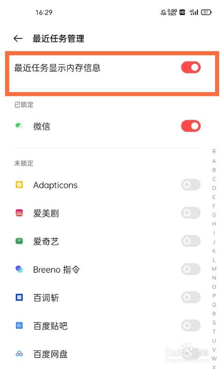 4、开启【比来使命显示内存信息】右侧的开关,打开多使命界面就会显示运行内存。