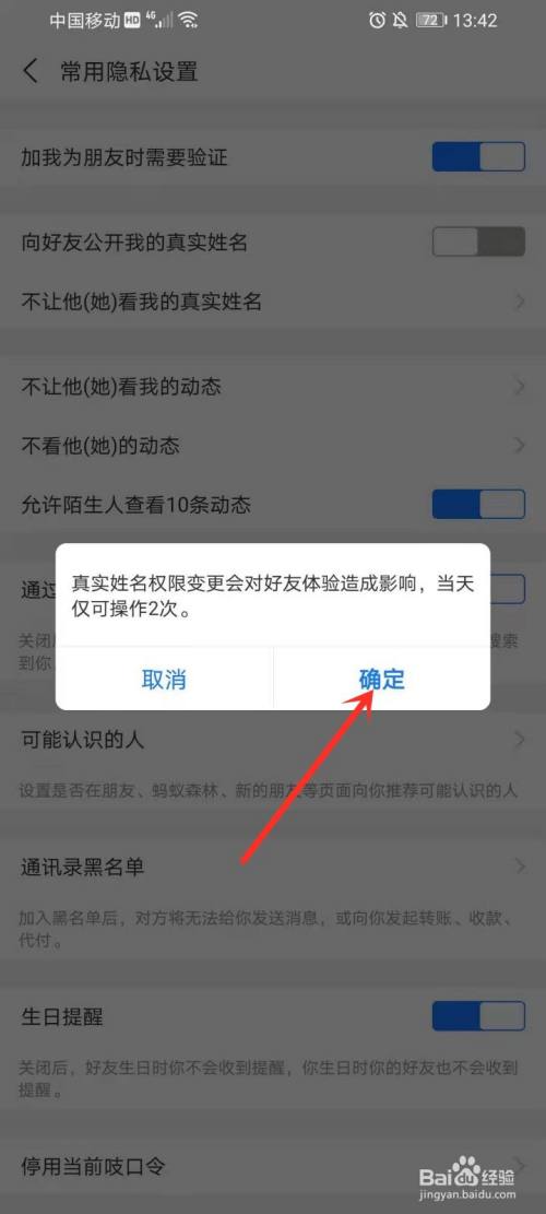 封闭”标的目的老友公开我的真实姓名“右侧的开关。