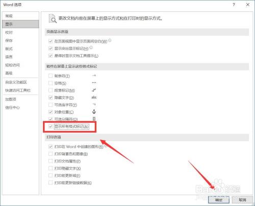 在显示设置中将【显示所有格局标识表记标帜】选中,点击【确定】。