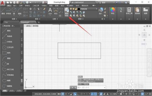 打开CAD,当前图层上有一个矩形,点击【图层特征】。