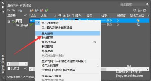 进入图层特征对话框,选择另一个图层,右键鼠标点击【置为当前】。