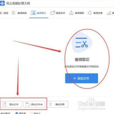 将需要剪切的音频添加进软件,点击添加文件,将音频从软件内部打开。