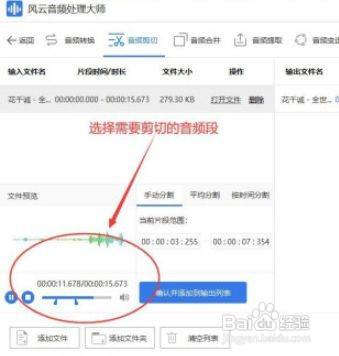 选择出来需要剪切的音频段。