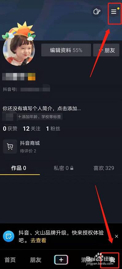 END1、打开抖音点击“我的”页面右上角【三】横线标记。