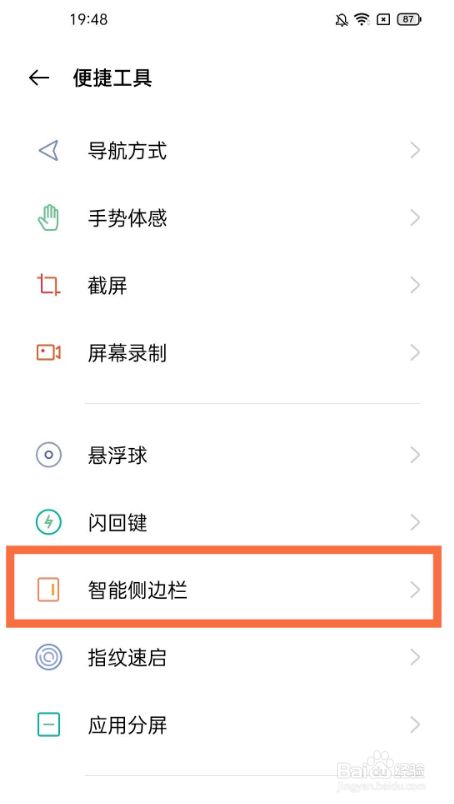 2、点击【智能侧边栏】选项。