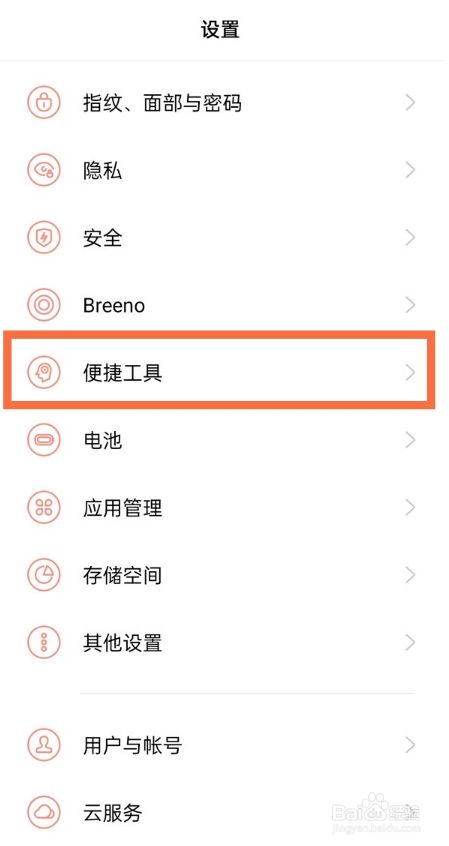 1、在手机设置菜单中点击【便捷东西】。