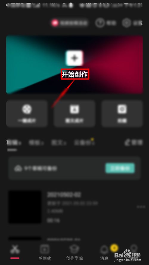 - 2在右上偏向,找到起头创作。因为色彩或者亮度的原因,可能不轻易找不到,请多一些耐烦。