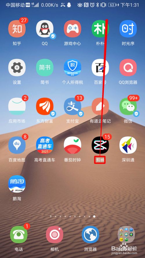 - 1打开手机进入后,找到剪映。因为色彩或者亮度的原因,可能不轻易找不到,请多一些耐烦。