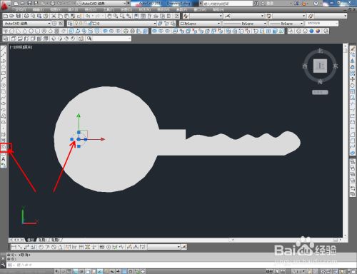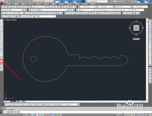 点击【面域东西】,选中图示钥匙轮廓图案并按下空格键确认,生当作面域图案。继续选中圆形图案并按下空格键确认,生当作圆形面域图案;