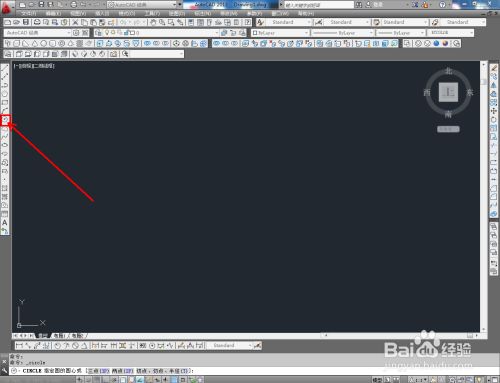 点击【圆东西】并绘制一个小圆图案后,点击【修剪东西】,将图示箭头指标的目的的线段剪除(如图所示);
