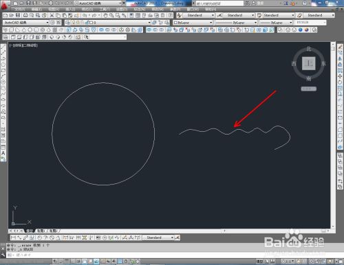 点击视图东西栏中的【俯视】切换到俯视图,点击【圆东西】按图示绘制一个圆形图案。点击【样条曲线】,绘制出一个曲线图案后,点击【多段线】东西,将曲线毗连起来;