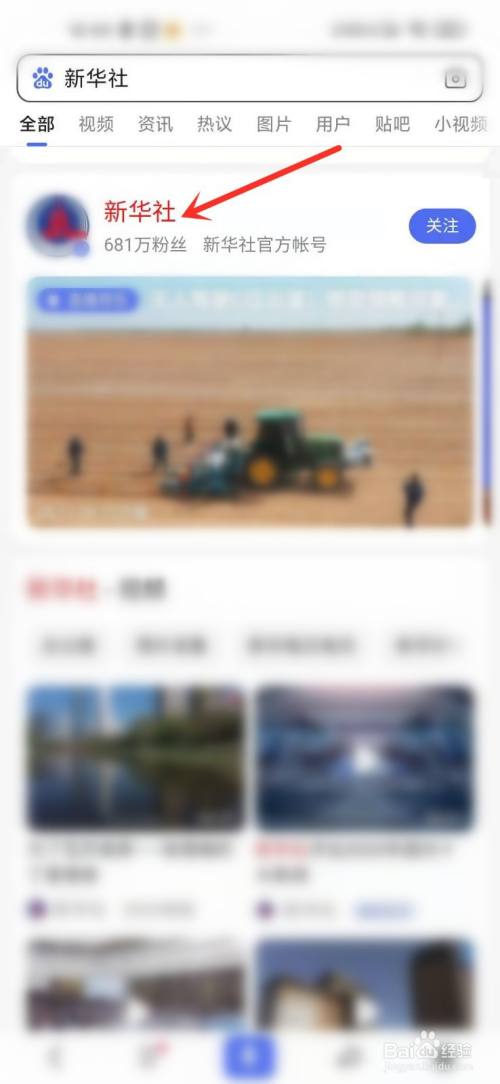 在搜刮页中找到“新华社”官方百家号,点击进入本家儿页。
