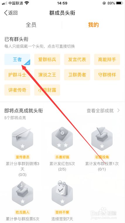 进入群聊后,点击小我头像上已有的群头衔
