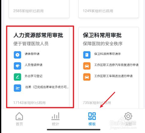 打开模板页面,找到并添加人力资本部常用审批模板。
