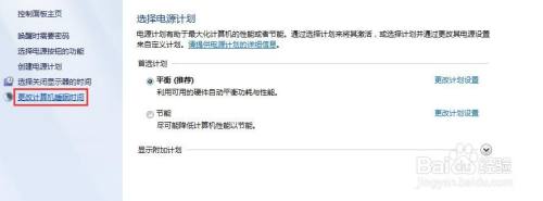 点击电源选项窗口左侧的更改计较机睡眠时候选项;
