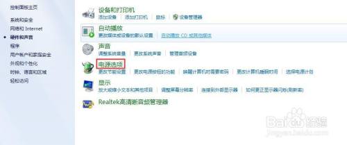 在硬件和声音窗口中选择电源选项;