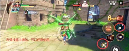 进犯时,先远距离释放友情技术,然后再利用“橡皮·抓”控住仇敌,接着普攻小段,然后再利用“橡皮·机关枪”。
