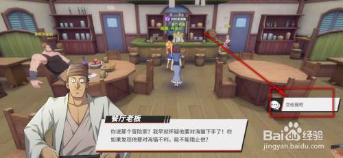 前去餐厅,与“贪酒的家伙”对话,点击“探问海猫的事”。