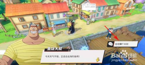 工具/原料oppoA52Android10帆海王热血航路1.0.7方式/步骤1打开帆海王热血航路游戏,找到鱼店大婶领取使命。2达到农业区如图位置。3接近树旁边点击砍伐按钮获取木材。34将10个木材给鱼店大叔。5和大叔出海垂钓会出新记载,选择杰克斯。6即可当作功完当作去垂钓吧使命。END