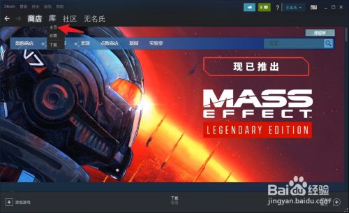 登录后进入在steam本家儿界面,点击项部左上方的【库】选项。
