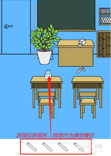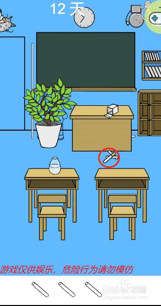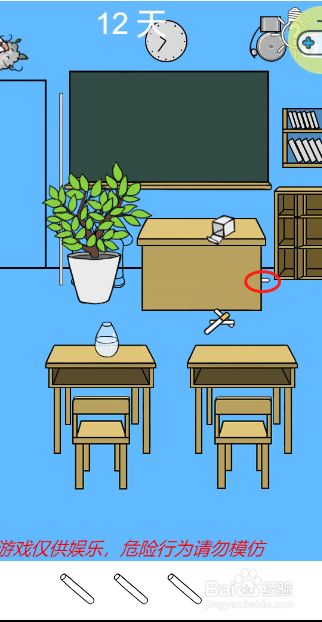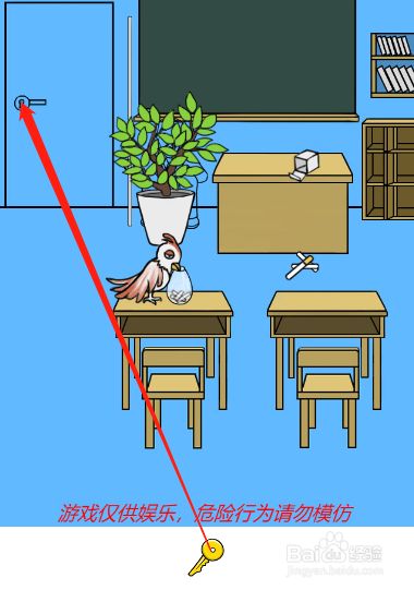 工具/原料联想小新13window10方式/步骤1首先点击图示的粉笔堆获得三根粉笔2注重呈现卷烟的时辰就不要继续点击了23接着点击拿到桌子后面的粉笔4然后把所有的粉笔放到图示的瓶子里面去5接着把小鸟脖子上面的钥匙拿下来6最后用钥匙打开教室的大门就可以了END