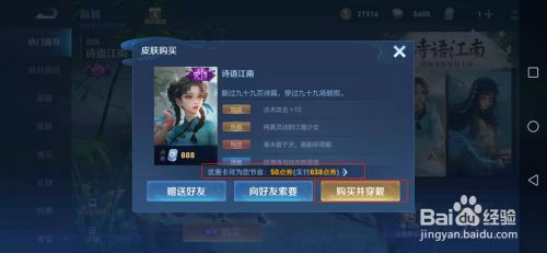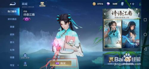 点击左侧皮肤遴选要采办的英雄皮肤,这里以热点保举的西施诗语江南为例,点击采办。