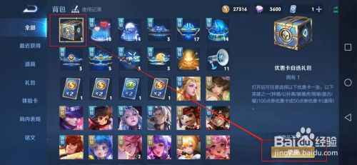 在签到活动或者每周登录奖励中时常可以获得优惠卡自选礼包,点击利用。
